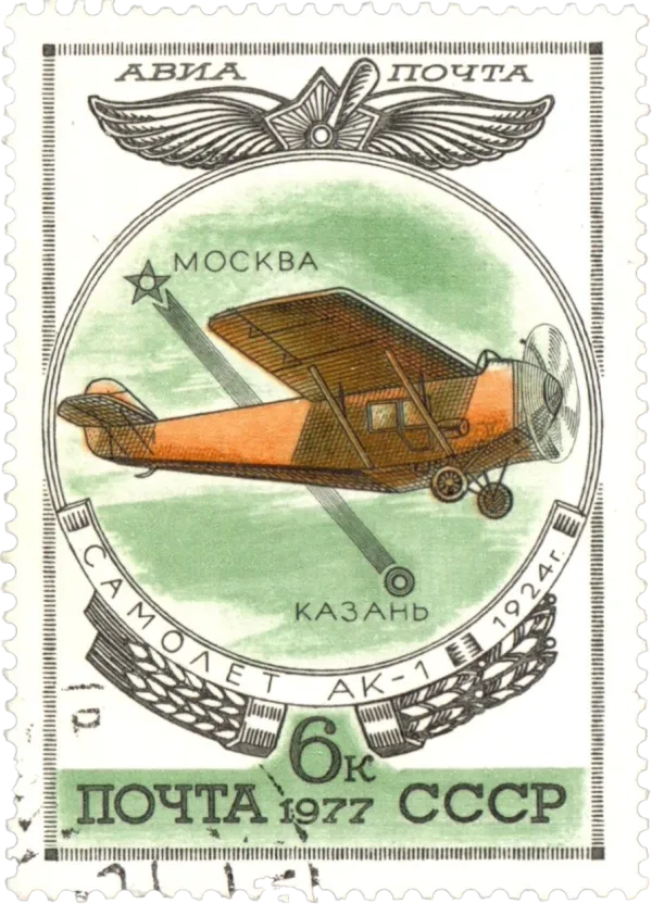 АВИА ПОЧТА МОСКВА 1924г. КАЗАНЬ AK-1 6к 1977 СССР