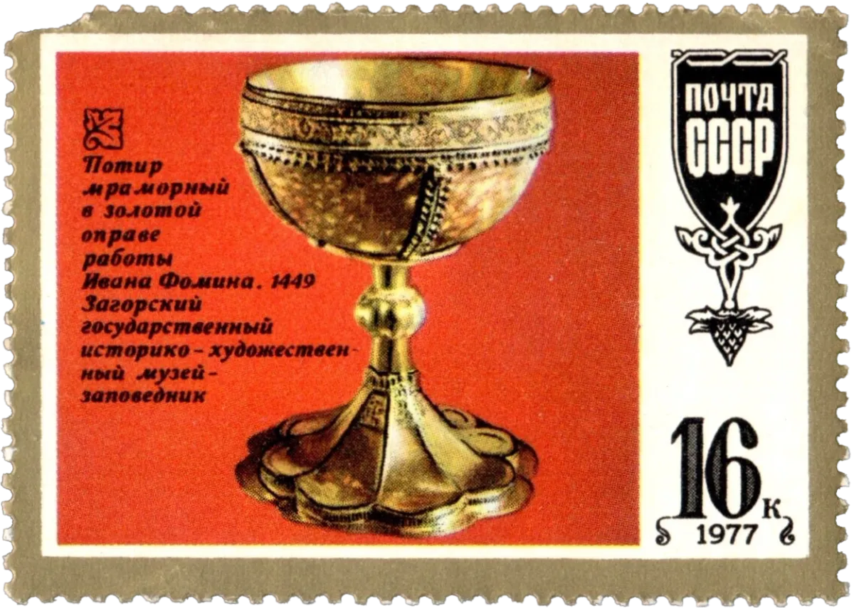 Потир мраморный в золотой оправе работы Ивана Фомина. 1449 Загорский государственный историко - художественный музей-заповедник