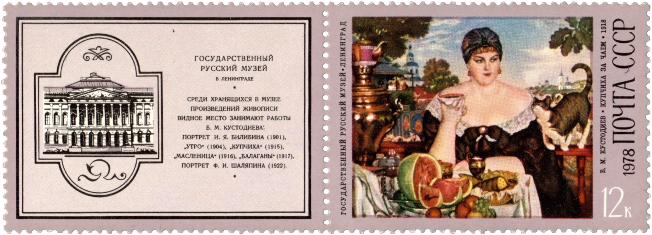 ГОСУДАРСТВЕННЫЙ РУССКИЙ МУЗЕЙ ЛЕНИНГРАД В. М. КУСТОДИЕВ УТРО 1978 ПОЧТА СССР